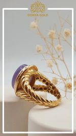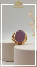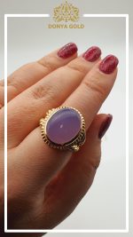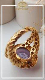 انگشتر تمام طلا همراه با مخراج کاری سنگ عقیق سوسنی
