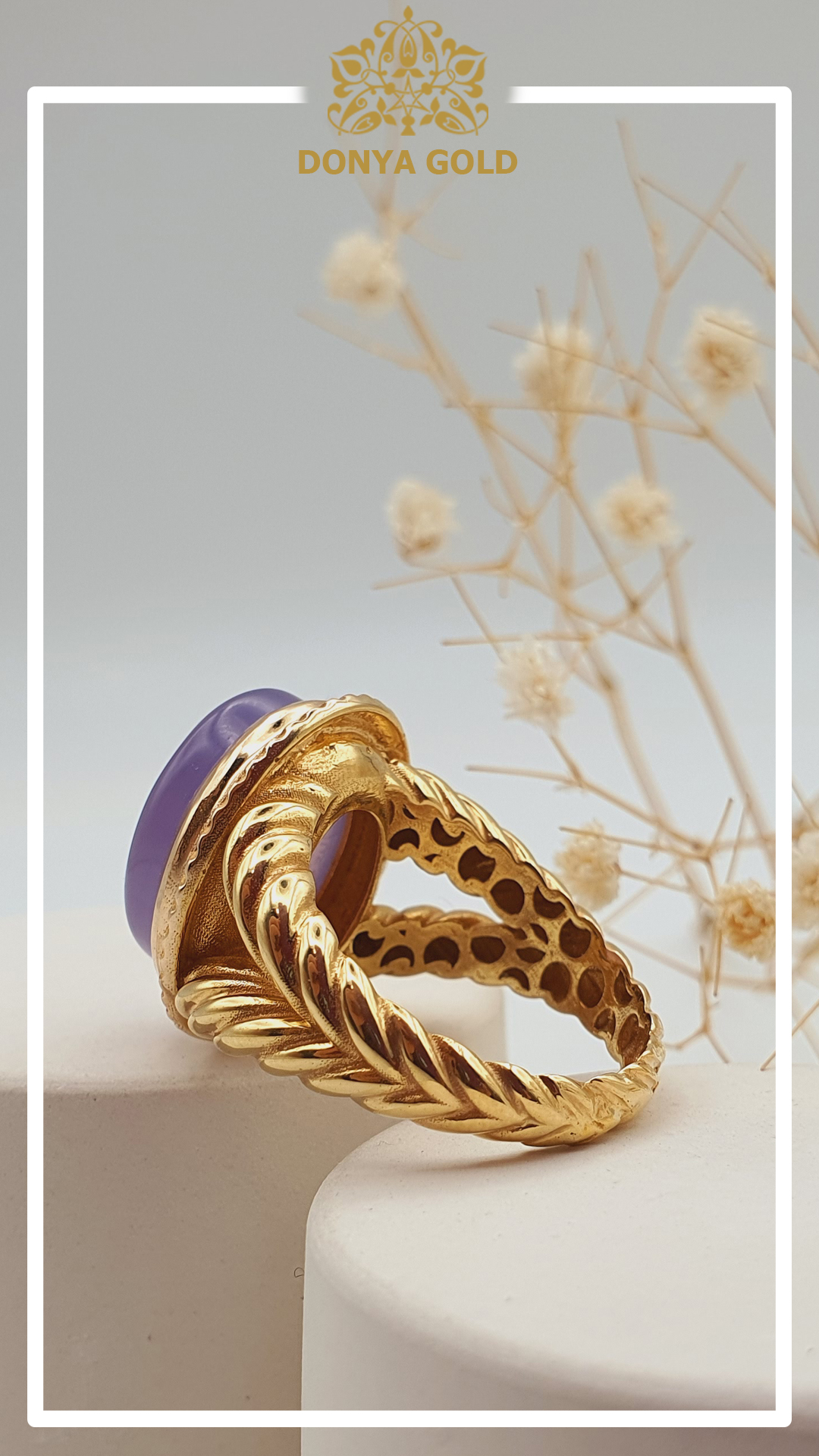 9 گرم طلای ناب که با تمام وجود طراحی، ساخته و سنگ عقیق سوسنی با دعای حک شده روش مخراج کاری شده؛ هدیه ای از دل و اعماق وجود