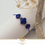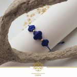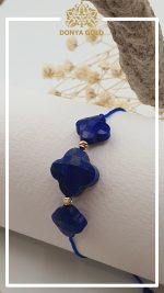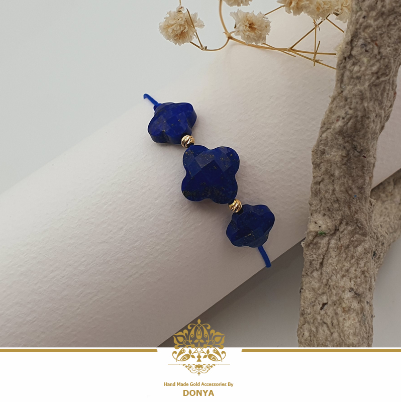 دستبند سنگ لاجورد با تراش چهارپر یا ونکلیف ترکیب با گوی های ال برنادو که میان سنگ ها کار شده است