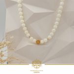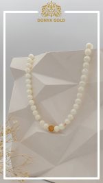 گردنبند صدف طبیعی سفید رنگ همراه با گوی طلای فیوژن گوی ال برنادو